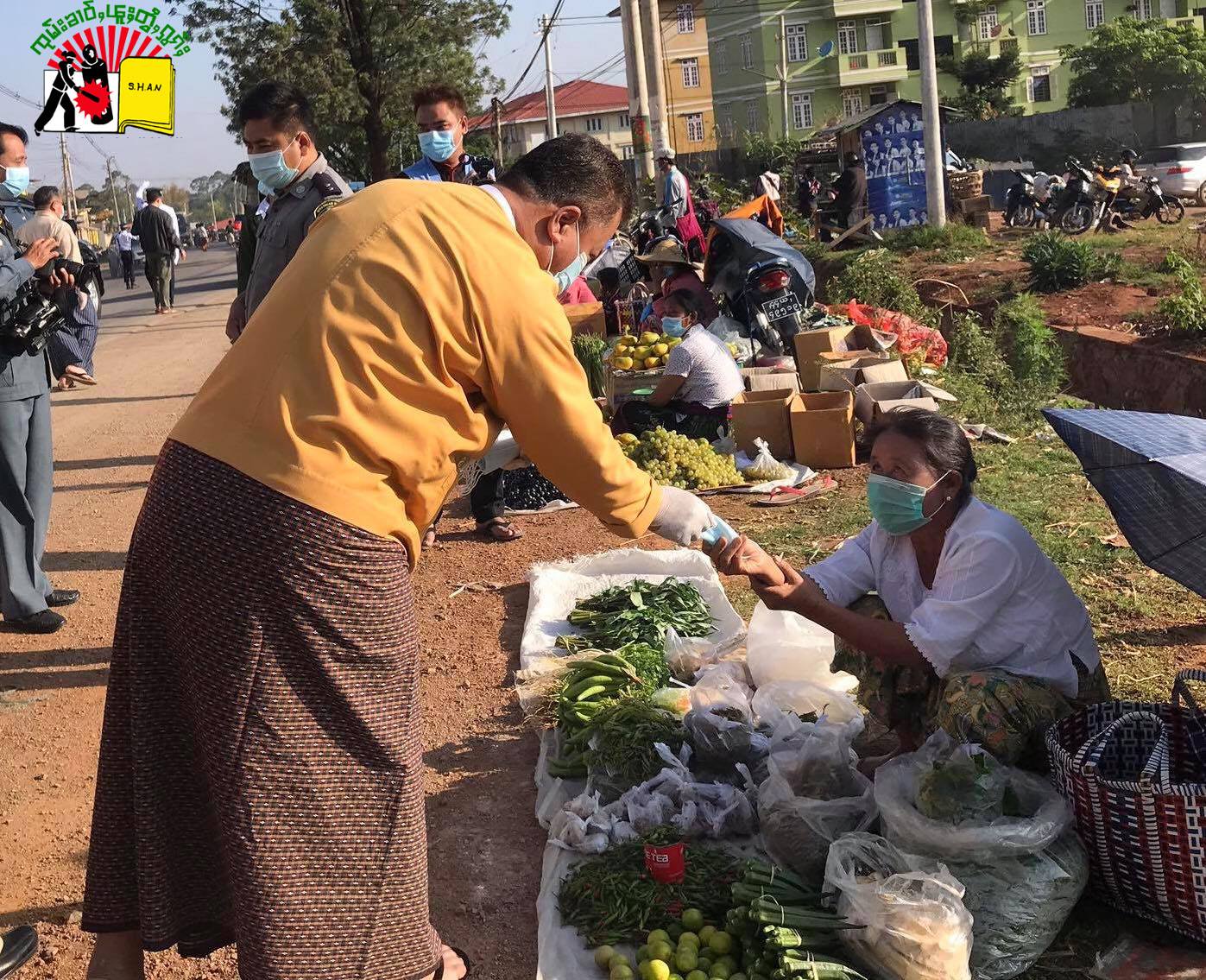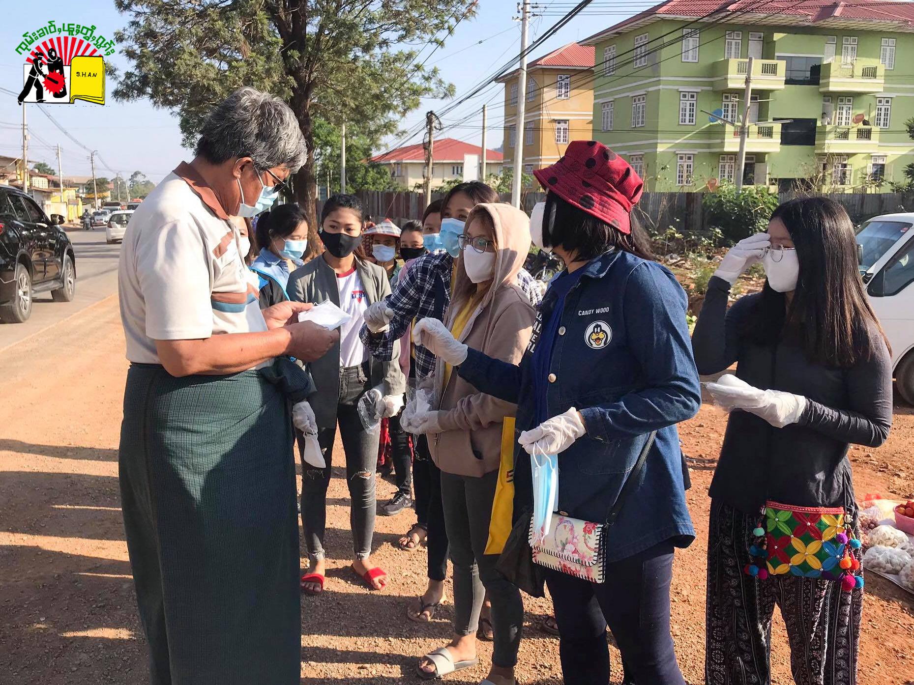 ယနေ့ မီးပုံးပျံကွင်း ရှေ့ ဘက်ခြမ်းတွင် သျှမ်းပြည် အစိုးရက ဈေးသည်တွေအတွက် Mask များယူလာသော်လည်း တကယ်ပေးသည့် အချိန်မှာ လာကူဝေပေးသည့် volunteerတွေလက်ထဲလည်း လုံလုံလောက်လောက်မရကြောင်း၊ ဝတ်စုံဆင်တူနှင့် တချို့လူများသည် ဝေရမည့် Mask များကို အိပ်ထဲထည့်သွားသည်ကိုတွေ့ရကြောင်း နန်းခင်ဘုန်းသွယ်က ပြောသည်။