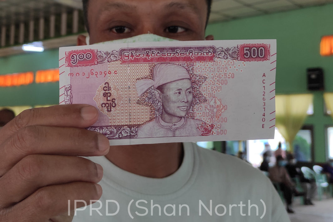 ဗိုလ်ချုပ်အောင်ဆန်း ပုံပါသည့် ကျပ် ၅၀၀ တန် ငွေစက္ကူကို သျှမ်းပြည်မြောက်ပိုင်း လားရှိုးမြို့တွင် ပင်စင်စားများအား ယနေ့ ဇူလိုင် ၂၁ ရက်တွင် စတင်ထုတ်ပေးနေကြောင်း သိရသည်။