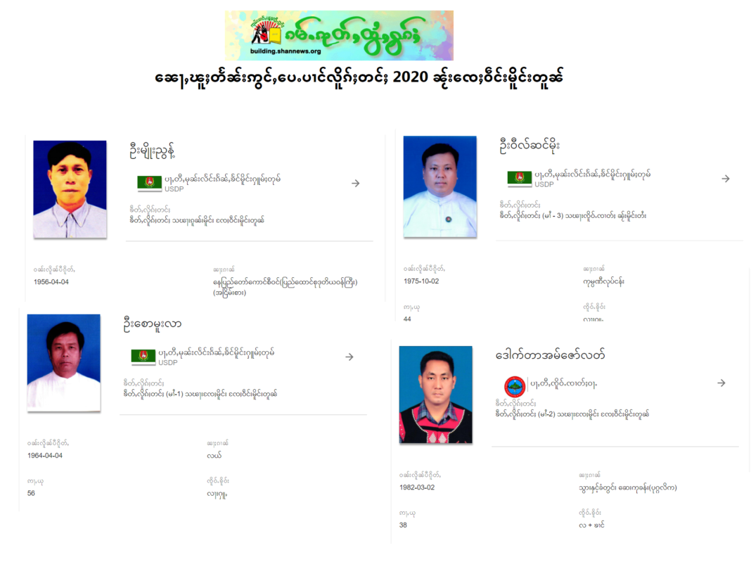 သျှမ်းပြည်အရှေ့ပိုင်း မိုင်းတုံမြို့နယ်တွင် ပြည်ထောင်စုကြံ့ခိုင်ရေး နှင့် ဖွံ့ဖြိုးရေးပါတီ ( USDP) မှ ၃ နေရာ အနိုင်ရရှိကြောင်း စုံစမ်းသိရှိရသည်။