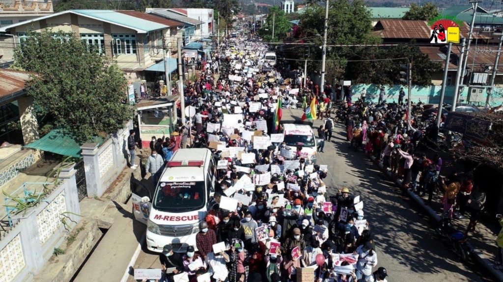 တပ်မတော် မှ နိုင်ငံတော်၏ အာဏာကို သိမ်းယူလိုက်သည့် အတွက် သျှမ်းပြည်အပါအဝင် မြန်မာတဝှမ်းလုံးရှိ သန်းချီ ပြည်သူများက စစ်အာဏာစနစ် ကျရှုံးရေး အတွက် ဖေဖော်ဝါရီ ၆ရက်တွင် လမ်းပေါ်ထွက်ကာ ဆန္ဒထုတ်ဖော်မှုပြုလုပ်လာကြသည်။