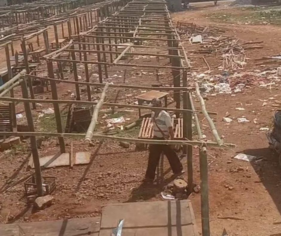 “ သူတို့ ဟိုအရင်ကလုပ်ထားတဲ့ဟာကို ပြန်ဖျတ်ပြီးတော့ အခုက အသစ်ပြန်ဆောက်ခိုင်းတာ။ ပုံစံကလည်း ဝါးနဲ့ ပဲ ပြန်ဆောက်ထားတာ။ အဲအသစ်ခန်းကို တခန်း ၃ သောင်းနဲ့ ပြန်ရောင်းမယ်။ တရက်ကိုက အခွန်ခ (၂)ရာကျပ်ပါဆောင်ရမယ်တဲ့။ တစ်ခန်းကို ၈ ပေလောက်ထိအကျယ်သူတို့ပြန်ဆောက်နေတာ” ဟု တန့်ယန်းမြို့ ဈေးတွင် ဆောက်လုပ်ခဲ့သည့် အမျိုးသားတစ်ဦးက ပြောသည်။