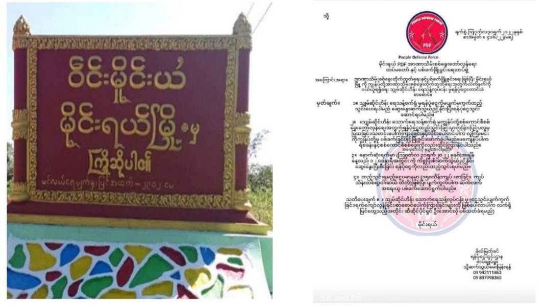 ယမန်နေ့ (သြဂုတ် ၃၀) ရက်တွင် မိုင်းရယ် PDF အမည်ခံအဖွဲ့သည် မိုင်းရယ်မြို့နယ် အတွင်းရှိ ရေသန့်စက်ရုံတခုကို လိပ်မူပြီး Viber ဖုန်းနံပတ်မှ တဆင့် ငွေကြေးတောင်းယူမှု ပြုလုပ်ခဲ့သည်။