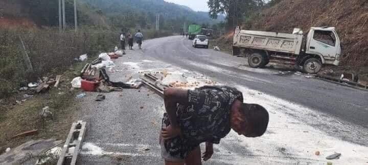 “ မြေသယ်ကား ကျိုင်းတုံဖက်ကနေ တာချီလိတ်ကိုလာတာ။ တောင်ကြားမှာ ဘလိတ်ပေါက်ပြီး တိမ်းမှောက်သွားတာ။ ၁ ဦးကတော့ ပွဲချင်းဆုံးသွားတယ်။ ကျန်တဲ့ ၃ ဦးက ထိခိုက်ဒဏ်ရာတွေ ပြင်းထန်ခဲ့တယ် “ ဟု ၎င်းက ပြောသည်။