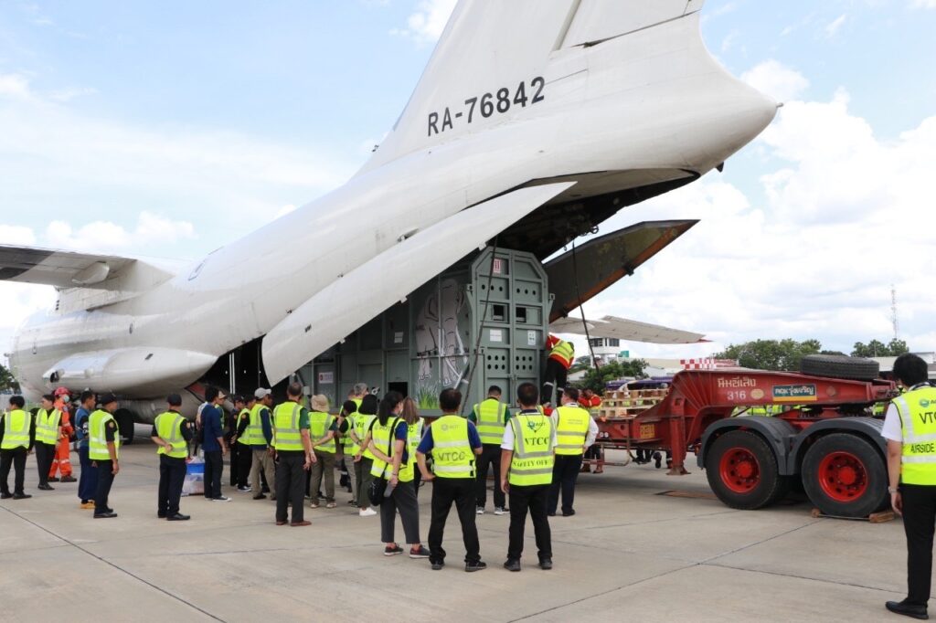 ယမန်နေ့ ဇူလိုင် (၂) ရက်နေ့က ၄ တန်ချိန်ရှိသည့် “ဖလိုင်းဆတ်သူရိန်း”အမည်ရှိ အသက် (၃၀) အရွယ် ဆင်တစ်ကောင်ကို သီရိလင်္ကာနိုင်ငံ မှ ထိုင်းနိုင်ငံ သို့ (၅) နာရီကြာ လေယာဥ်စီးပြီး နေ့လည် (၂) နာရီတွင် ထိုင်းနိုင်ငံ ချင်းမိုင် အပြည်ပြည်ဆိုင်ရာ လေဆိပ်သို့ ရောက်ရှိခဲ့ကြောင်း သိရှိရသည်။