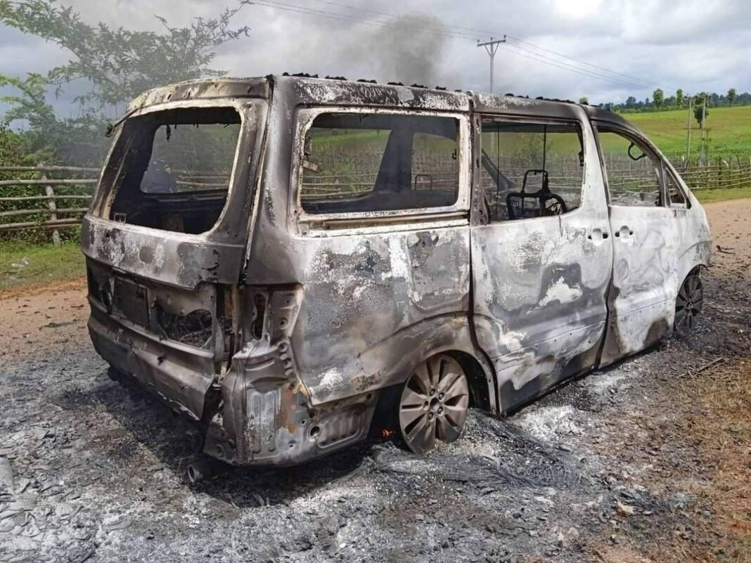 ပြီးခဲ့သည့် ဇူလိုင်လ ၃ ရက်နေ့ မနက်ပိုင်း ၉ နာရီဝန်းကျင် အချိန်တွင် ကျေးသီးမြို့ နှင့် မိုင်းကောဝ် ကြားရှိ စစ်ကောင်စီ တပ်စခန်းကုန်းမြင့် အနီးတွင် ကျည်ဆန်များ သယ်ဆောင်လာသည့် Alphard အမျိုးအစား ကား တစ်စီးမီးလောင်သွားကြောင်း ဒေသခံများက သျှမ်းသံတော်ဆင့်ကို ပြောသည်။