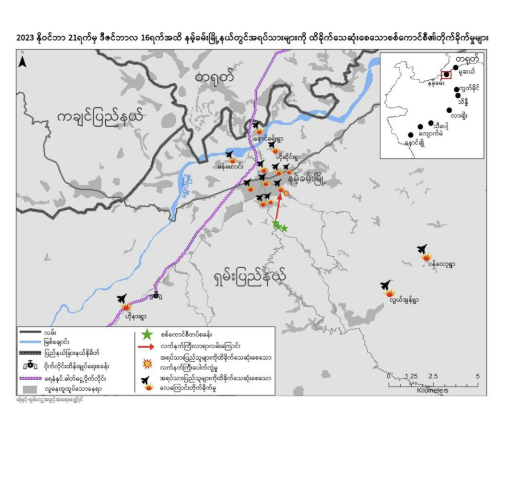 ပြီးခဲ့သည့် အောက်တိုဘာလ ၂၉ ရက်တွင်လည်း စစ်ကောင်စီက လေကြောင်းဖြင့် ဗုံးကြဲတိုက်ခိုက်ခဲ့သည့် နောင်ချိုမြို့ အနောက်ဖက် ၆ ကီလိုမီတာဝေးကွာသည့် ကျောက်ကြမ်းရွာသည် ပိုက်လိုင်းနှင့် မီတာ ၁၀၀ သာဝေးကွာသည်။