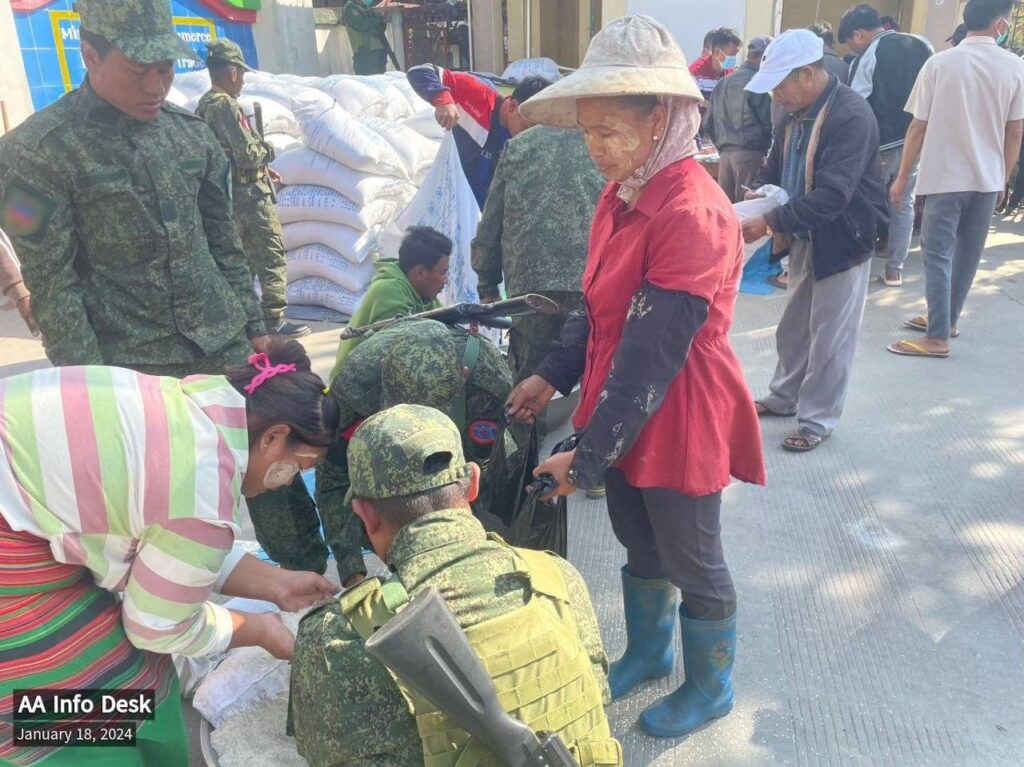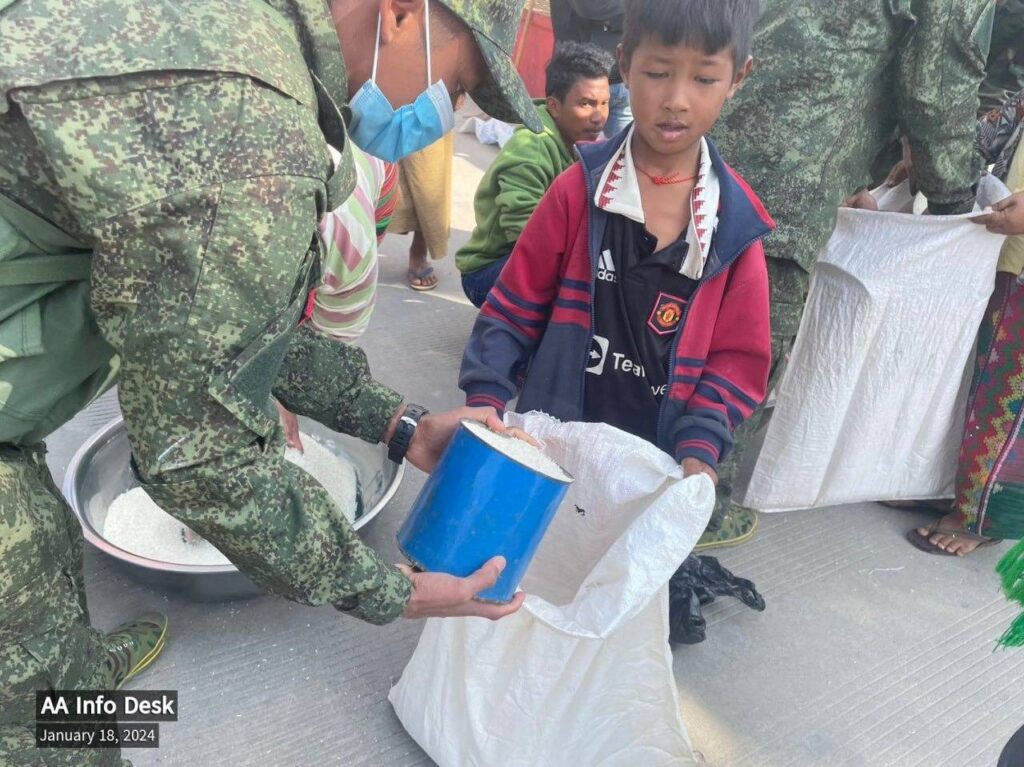 ဇန်နဝါရီလ ၁၆ ရက် နေ့လည် (၁)နာရီခွဲခန့်မှ စတင်၍ ညနေ (၆)နာရီခန့်အထိ မူဆယ်မြို့နယ် ၁၀၅ မိုင် ကုန်သွယ်ရေးဇုံ အနီးတဝိုက်ရှိ စစ်ဘေးရှောင်ပြည်သူများကို ကူညီပံ့ပိုးမှုအဖြစ် ညီနောင်မဟာမိတ် (၃)ဖွဲ့၏ တပ်ဖွဲ့ဝင် ရက္ခိုင့်တပ်တော် AA က ဆန်ပေးဝေခဲ့ကြောင်း ယနေ့ (ဇန်နဝါရီလ ၁၈)တွင် ထုတ်ပြန်သည်။