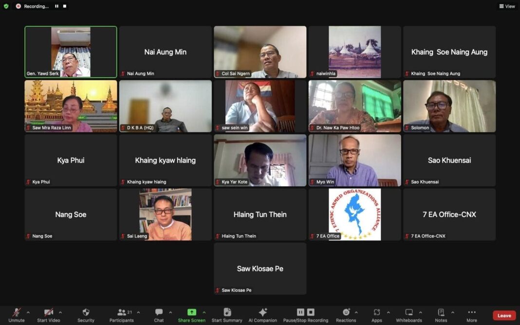 တိုင်းရင်းသားလက်နက်ကိုင် အဖွဲ့အစည်း (၇)ဖွဲ့၏ မဟာမိတ်အဖွဲ့ 7 EAO Alliance ဦးဆောင်အဖွဲ့ အစည်းအဝေးကို အွန်လိုင်းဖြင့် ကျင်းပပြီးစီးခဲ့ကြောင်း စုံစမ်းသိရသည်။