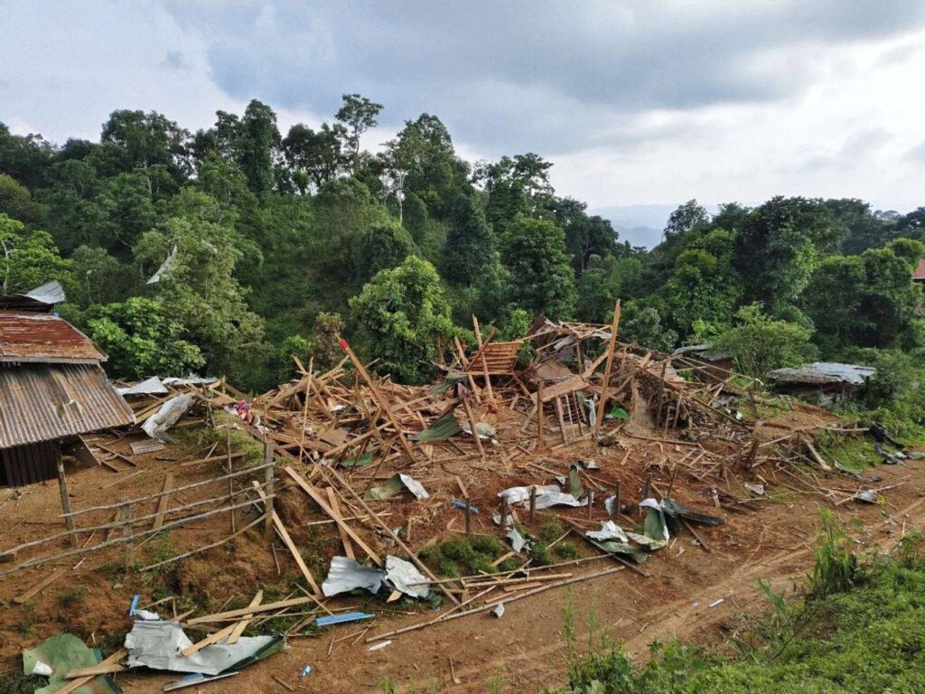 ကျောက်မဲနှင့် မိုးကုတ်မြို့နယ် အစပ်ရှိ တောင်နီကျေးရွာသို့ စစ်ကောင်စီတပ်မှ လေကြောင်းဗုံးကြဲ တိုက်ခိုက်ခဲ့စဉ် ပြည်သူနေအိမ် (၂) လုံး ထိခိုက်ပျက်စီးခဲ့ရကြောင်း သိရသည်။
