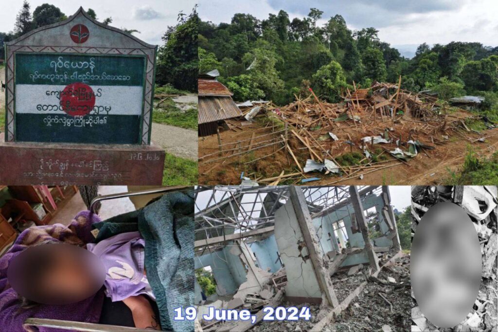 ယမန်နေ့ (ဇွန်လ ၁၉ ရက်) နေ့လယ် ၃ နာရီခွဲခန့်တွင် ကျောက်မဲနှင့် မိုးကုတ်မြို့နယ် အစပ်ရှိ တောင်နီကျေးရွာသို့ စစ်ကောင်စီတပ်မှ ဂျက်လေယာဉ်ဖြင့် ဗုံးကြဲတိုက်ခိုက်ခဲ့ခြင်းကြောင့် အရပ်သားတစ်ဦး သေဆုံးပြီး အသက်(၁၀)နှစ်အရွယ် ကလေးတစ်ဦး အပါအဝင် (၃) ဦး ဒဏ်ရာရခဲ့သည်။