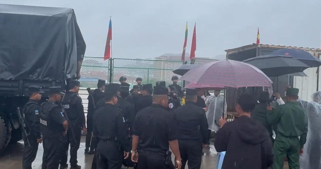 ယမန်နေ့ (ဩဂုတ်လ ၁ ရက်) နံနက်ပိုင်းတွင် ‘ဝ’တပ်ဖွဲ့ UWSA ထိန်းချုပ်ဒေသ ပန်ဆန်းမြို့ရှိ တရုတ်နယ်စပ်ဂိတ်တွင် ‘ဝ’ရဲတပ်ဖွဲ့က ဖမ်းဆီးရမိသည့် အွန်လိုင်းကျားဖြန့်လုပ်ကိုင်သူ တရုတ်နိုင်ငံသား ၁၀ ဦးကို တရုတ်ရဲတပ်ဖွဲ့ထံ လွှဲပြောင်းပေးအပ်လိုက်ကြောင်း ‘ဝ’တပ်ဖွဲ့မှ သတင်းထုတ်ပြန်သည်။