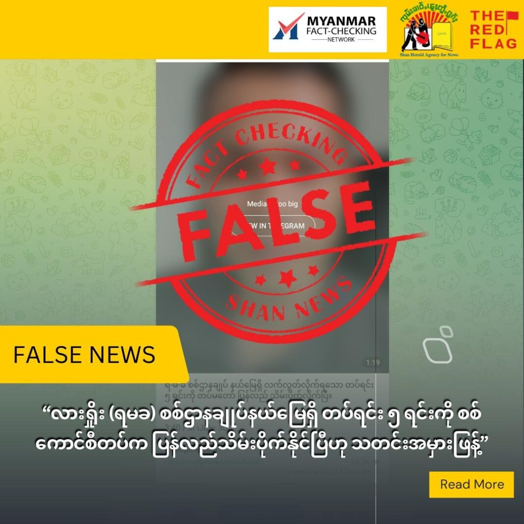 သတင်းတုသတင်းအမှားများနှင့် ပတ်သက်ပြီး အချက်အလက်စစ်ဆေး မေးမြန်းလိုလျှင် Myanmar Fact-Checking Network အဖွဲ့ဝင်ဖြစ်သော သျှမ်းသံတော်ဆင့် လူမှုကွန်ရက်စာမျက်နှာ (SHAN Burmese Vision ) Facebook Chat Box ကနေဆစ်ဆင့်သတင်းရဲ့ လင့်ခ် (သို့မဟုတ်) Screen Short ပုံပေးပို့ခြင်းဖြင့် စစ်ဆေးနိုင်ပါတယ်။