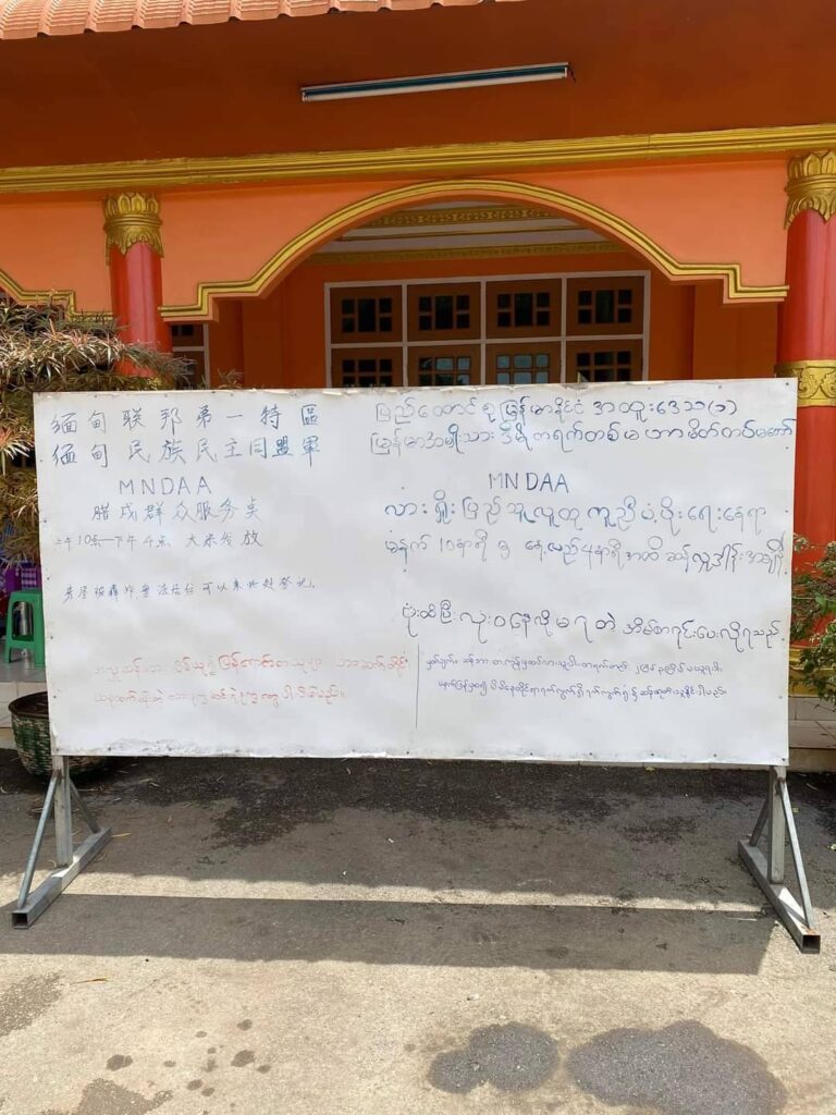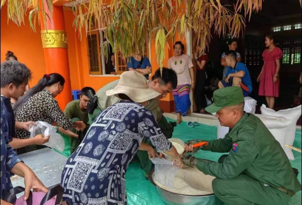 ပုံစာ – လားရှိုးမြို့ မန်ဆူသျှမ်းကျောင်းတွင် MNDAA က အရပ်သားများကို ဆန်ပေးဝေနေစဉ်
