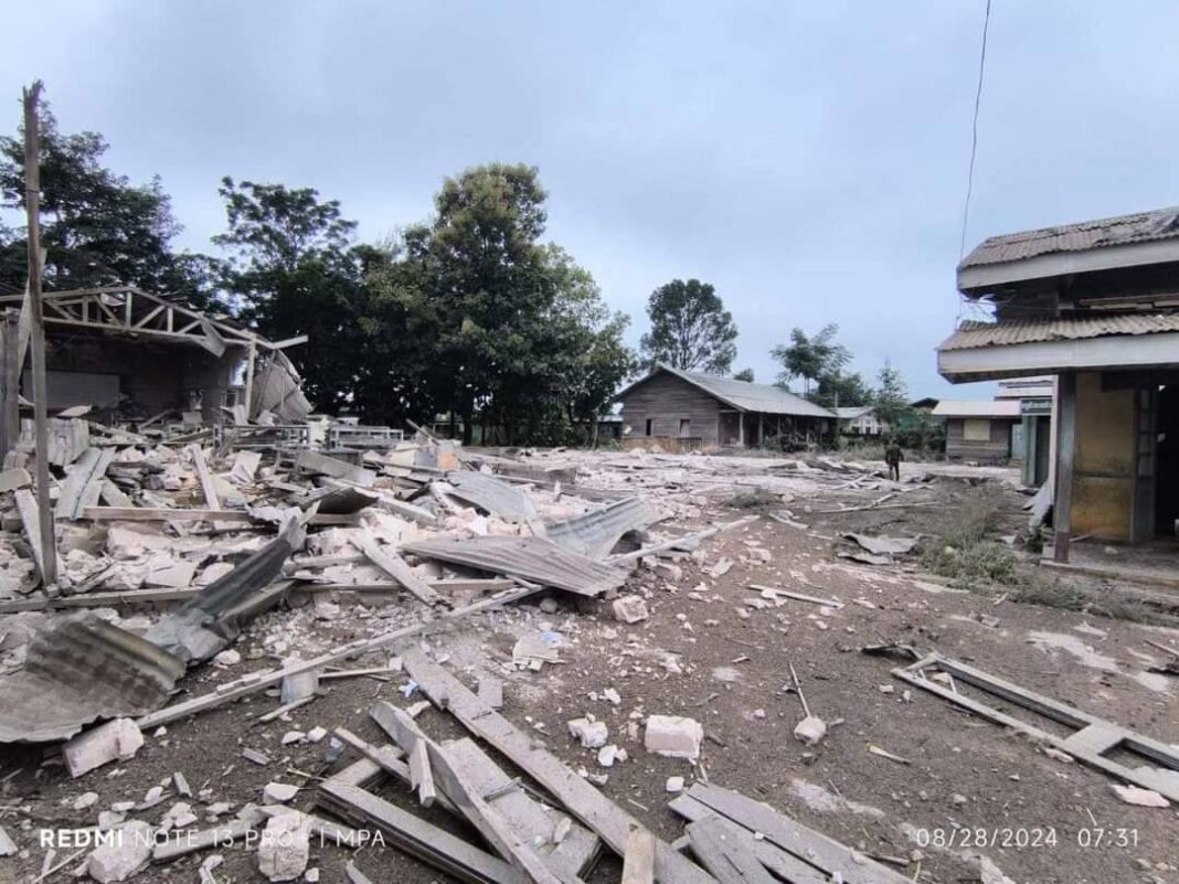 ဩဂုတ်လ (၂၇) ရက် ည ၁၁ နာရီကျော်တွင် ကျောက်မဲမြို့ ရပ်ကွက်(၉) တိလင်ရပ်ရှိ အထက-(၂) စာသင်ကျောင်းသို့ စစ်ကောင်စီတပ်မှ ဂျက်ဖိုက်တာဖြင့် ပေါင် (၅၀၀) ဗုံးနှစ်လုံး ကြဲချတိုက်ခိုက်ခဲ့ရာ စာသင်ဆောင်များ ထိခိုက်ပျက်စီးခဲ့ပြီး အနီးရှိ နေအိမ်အတွင်းမှ ဒေသခံ (၁) ဦး သေဆုံးပြီး (၂) ဦးထက်မနည်း ထိခိုက်ဒဏ်ရာ ရရှိခဲ့ကြောင်း ကျောက်မဲဒေသခံများက ပြောသည်။