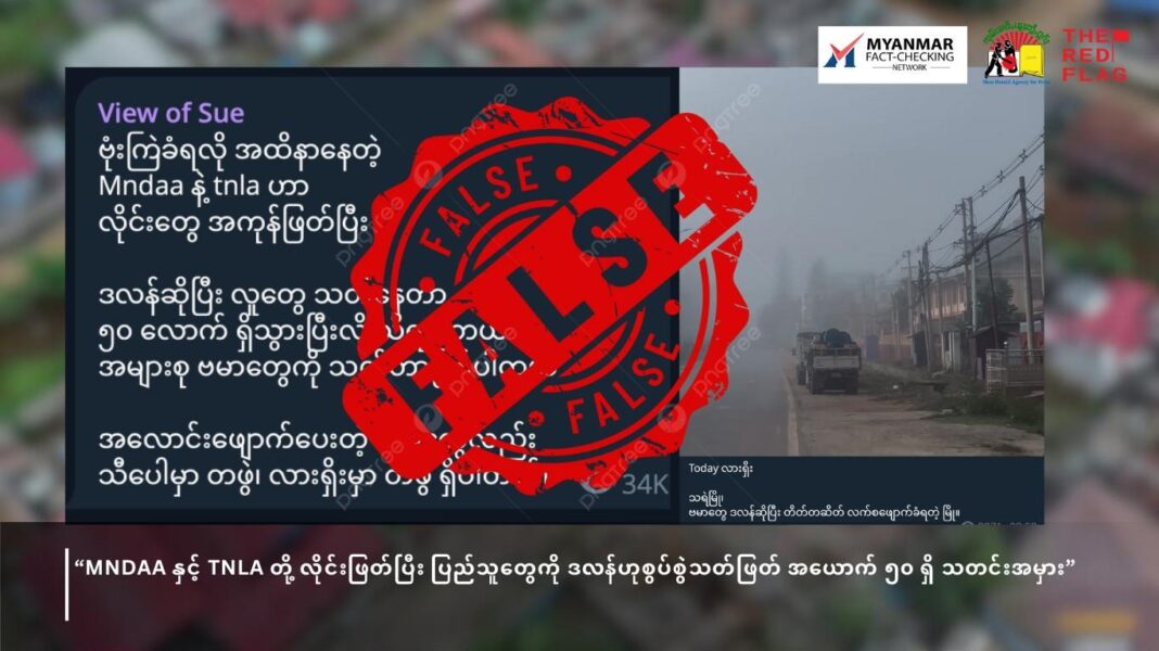 Subscribers ၁၆,၀၀၀ ကျော်ရှိသည့် View of Sue ချန်နယ်မှ အောက်တိုဘာလ ၈ ရက်နေ့တွင် ဖြန့်ချိခဲ့ပြီး“ဗုံးကြဲခံရလို့ အထိနာနေတဲ့ MNDAA နဲ့ TNLA ဟာ လိုင်းတွေအကုန်ဖြတ်ပြီး၊ ဒလန်ဆိုပြီး လူတွေသတ်နေတာ ၅၀ လောက်ရှိသွားပြီလို့ သိရပါတယ်။ အများစု ဗမာတွေကို သတ်တာဖြစ်ပါတယ်” ဟု (မူရင်းအတိုင်း) ရေးသားဖြန့်ဝေခဲ့ခြင်း ဖြစ်သည်။