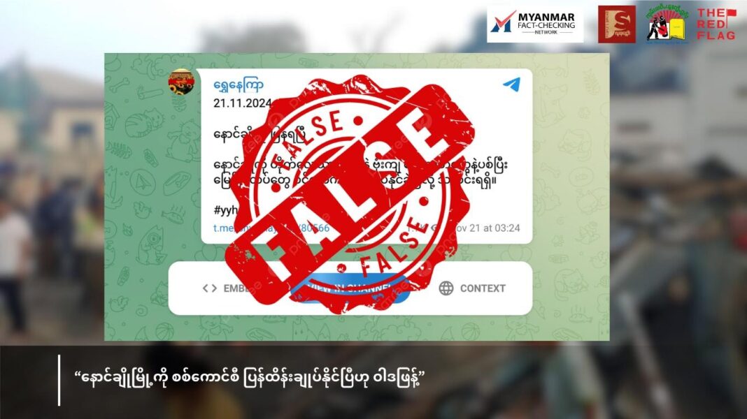 သတင်းအမှားဖြန့်ချိသူတွေ ဖော်ပြထားသော အကြောင်းအရာကို Myanmar Fact-checking Network အဖွဲ့ဝင် အချက်အလက်စစ်ဆေးသူများက တိုက်ဆိုင်စစ်ဆေးခြင်း ပြုလုပ်ခဲ့သည်။ ထိုအကြောင်းအရာသည် မှားယွင်းနေသည်။