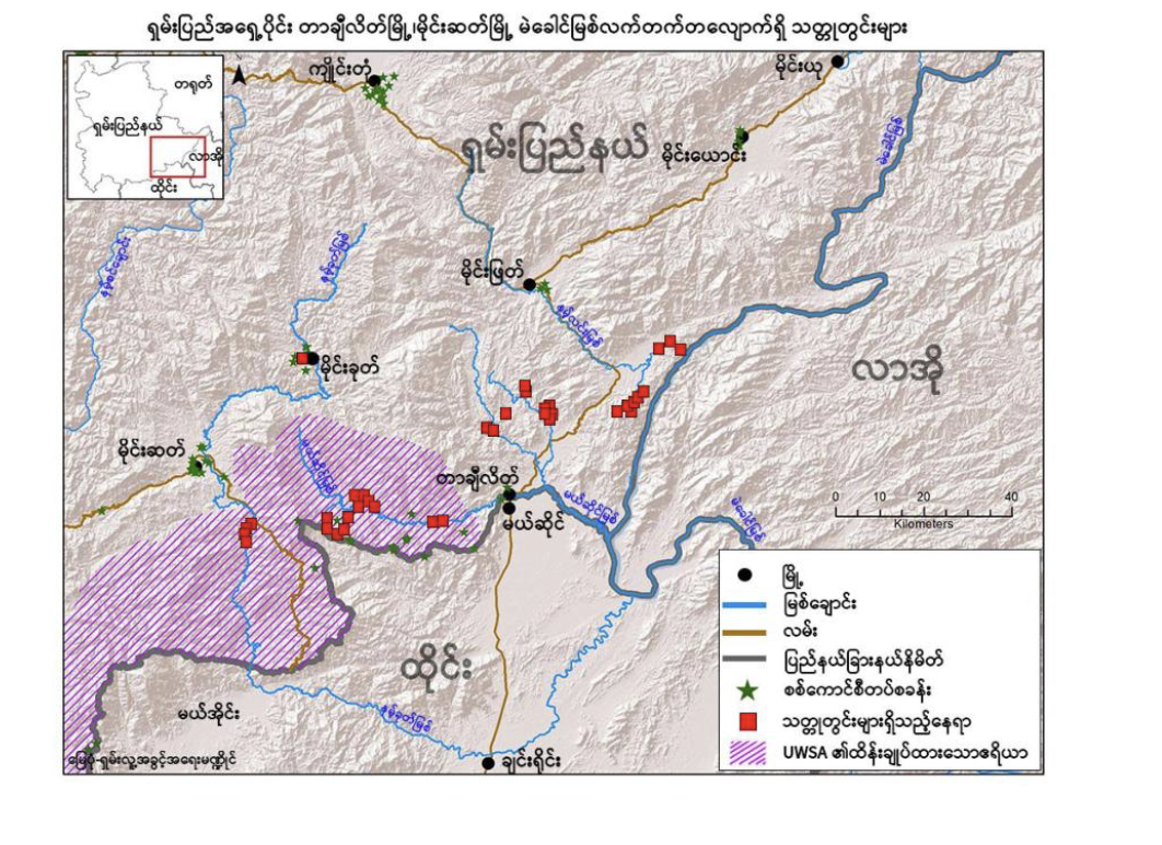 မိုင်းဆတ်မြို့ အရှေ့ပိုင်းရှိ စစ်ကောင်စီနှင့် ‘ဝ’တပ်ဖွဲ့ UWSA လက်အောက်ခံ ဒေသများတွင် လွန်ခဲ့သည့် ၂ နှစ်ခန့်မှ စ၍ ရွှေတူးဖော်ထုတ်လုပ်မှု ပိုမိုများပြားလာခြင်းကြောင့် မြစ်ဘေးရှိ တောင်၏ အစိတ်အပိုင်းတချို့မှာ တိုက်စားခံရကာ ခဲဓာတ်များသော ကန်များအဖြစ် ပြောင်းလဲသွားပြီး ဆိုင်ယာနိုက်ကဲ့သို့ အဆိပ်ရှိ ဓာတုပစ္စည်းများ ပါဝင်နေကြောင်း SHRF ထုတ်ပြန်ချက်တွင် ရေးသားထားသည်။
