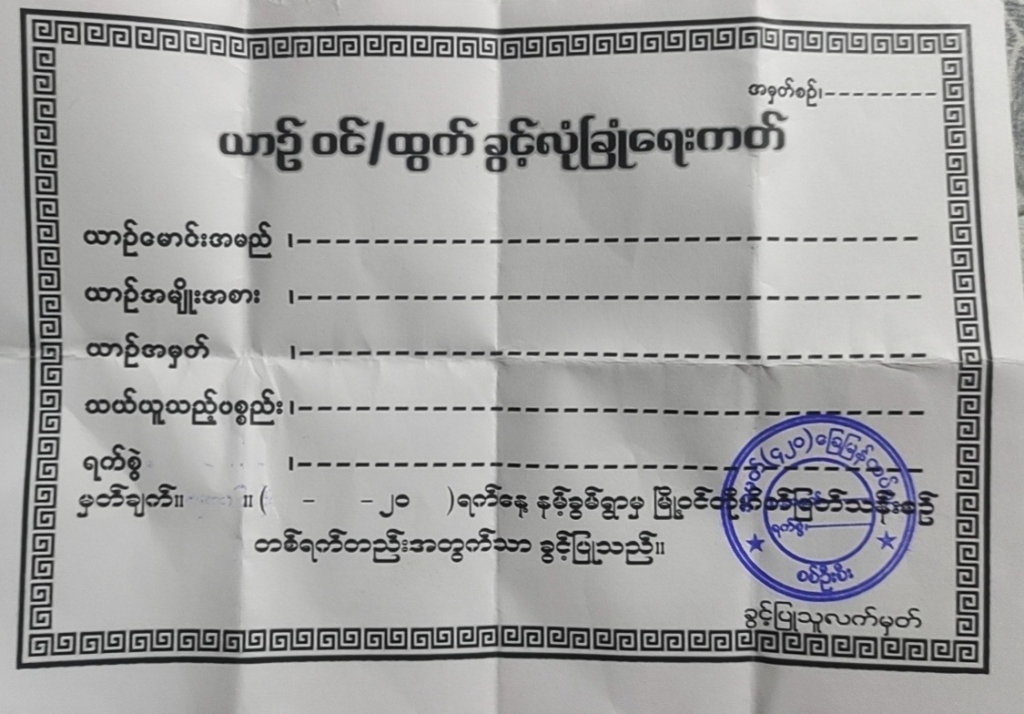 သျှမ်းပြည် မူဆယ်မြို့တွင် ကိုယ်ပိုင်လုပ်ငန်းများအတွက် အသုံးပြုရန်နှင့် ကား၊ ဆိုင်ကယ်များကို သတ်မှတ်ဂါလန်အတိုင်း ခွင့်ပြုရန် စက်သုံးဆီ ဝယ်ယူခွင့်မှတ်တမ်းစာအုပ် ပြုလုပ်ရမည်ဖြစ်ကြောင်း စုံစမ်းသိရသည်။