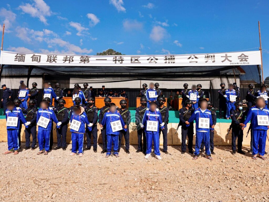 ယမန်နေ့ (ဒီဇင်ဘာလ ၅ ရက်) နံနက် ၈ နာရီမှ စတင်ပြီး ကိုးကန့်တပ်ဖွဲ့ MNDAA ထိန်းချုပ်ထားသည့် လောက်ကိုင်မြို့ရှိ မြန်မာ-တရုတ် နယ်ခြားမှတ်တိုင် BP-(၁၂၅) အနီးတွင် ပြန်ပေးဆွဲမှု၊ ငွေညှစ်မှုနှင့် လူသတ်မှုတို့ဖြင့် သံသယရှိသူ (၂၁) ဦးတို့ကို လူအများ ရှေ့မှောက်တွင် သေဒဏ်အပါအဝင် ပြစ်ဒဏ်စီရင်ခဲ့ကြောင်း MNDAA က သတင်းထုတ်ပြန်သည်။