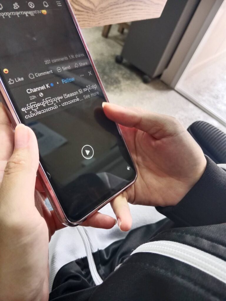 “ ရွာမှာက ဝိုင်ဖိုင်မတတ်နိုင်ဘူး။ ဖုန်းဘေလ် ( Phone Bill)ဝယ်ပြီး သုံးနေရတာ။ နေ့တိုင်း လိုင်းပေါ်က အတန်းတက်ရတယ်။ အရင်က လစဉ်ဒေတာ တစ်သောင်းခွဲ ဖိုးဝယ်ရင် 30GBတောင်ရတာ။ခုက 16GBပဲ ရတော့တာ။ လိုင်းကလည်းမကောင်းဘူး။ Zoom ဖွင့်ပြီး ဆွေးနွေးတဲ့အခါ လိုင်းက ခဏခဏကျတယ်။ ကိုယ်က ဝင်ငွေလည်း မရှိဘူး။ ပညာကလည်း သင်ချင်တယ်။ ဘေလ်ဖိုးနဲ့ မွဲတော့မယ်။” ဟု ဖုန်းအင်တာနက်သုံးစွဲသည့် အမျိုးသမီးက ဆိုသည်။