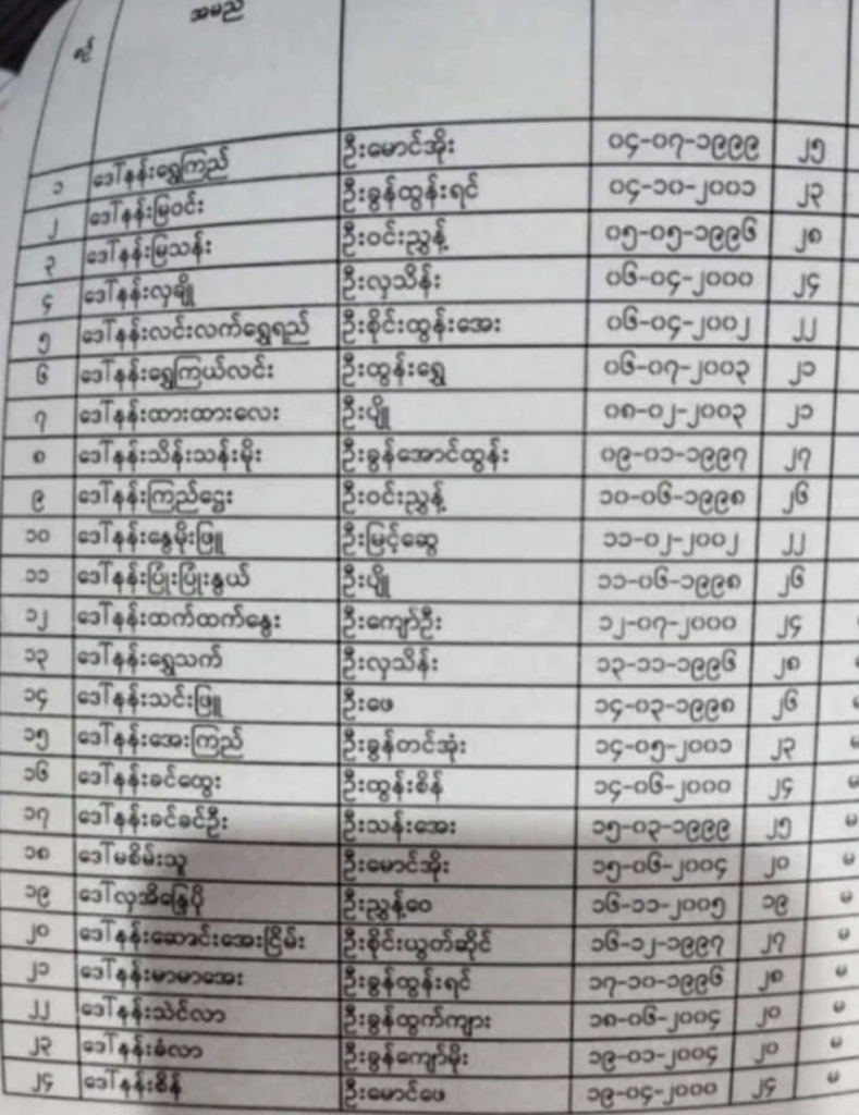 မြန်မာနိုင်ငံရှိ အမျိုးသမီးများသည် အမျိုးသား နည်းတန်းတူ စစ်မှုထမ်းဆောင်ရန် ဇန်နဝါရီလ မှ စပြီး အမှတ်စဉ် (၁)အတွက် စစ်ကောင်စီ မှ အမျိုးသမီးစစ်မှုထမ်းစာရင်းများ ကောက်ခံနေသည်။
