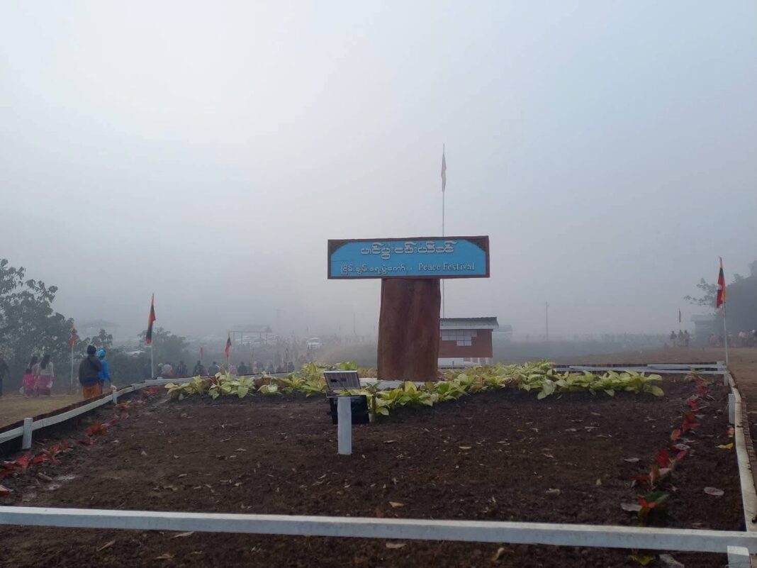 ယမန်နေ့ (ဖေဖော်ဝါရီလ ၆ ရက်)တွင် တစ်နိုင်ငံလုံး ပစ်ခတ်တိုက်ခိုက်မှု ရပ်စဲရေးသဘောတူစာချုပ် NCA အထိမ်းအမှတ်ကျောက်တိုင်ကို ငြိမ်းချမ်းရေးပွဲတော်အတွင်း ဖွင့်လှစ်ခဲ့ပြီး NCA လက်မှတ်ရေးထိုးခဲ့စဉ်က အသိသက်သေအဖြစ် ပါဝင်ခဲ့ကြသည့် ကုလသမဂ္ဂ UN ၊ ဥရောပသမဂ္ဂ EU ၊ တရုတ်၊ အိန္ဒိယ၊ ထိုင်းနှင့် ဂျပန်နိုင်ငံတို့၏ အလံများကိုလည်း လွှင့်ထူထားသည်။