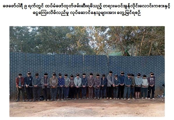 မိုင်းဟဒေသတွင် စစ်ကောင်စီတပ် ဝင်ရောက်ဖမ်းဆီးခဲ့သည့် ကျားဖြန့်ရုံများမှ တရုတ်နိုင်ငံသား အမျိုးသား (၂၇) ဦးနှင့် အမျိုးသမီး (၂) ဦး၊ ဗီယက်နမ်နိုင်ငံသား အမျိုးသမီး (၁၈) ဦး၊ မြန်မာနိုင်ငံသား အမျိုးသား (၅) ဦးနှင့် အမျိုးသမီး (၂၉) ဦး၊ စုစုပေါင်း (၈၁) ဦး ဖမ်းဆီးရမိခဲ့ကြောင်း စစ်ကောင်စီဘက်မှ ဖေဖော်ဝါရီ (၇) ရက်တွင် သတင်းထုတ်ပြန်သည်။