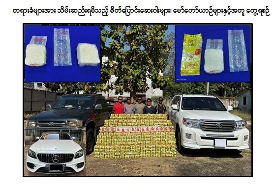၎င်းမူးယစ်မှောင်ခိုဂိုဏ်းအဖွဲ့ထံမှ ကျပ်ငွေ ၉၆ ဘီလီယံကျော် တန်ဖိုးရှိ အိုက်စ် (မက်သ်အဖတ်တမင်း) ၃ တန်ကျော်၊ ကတ်တမင်း ၂၀၀ ကီလိုဂရမ် တို့နှင့်အတူ ရန်ကုန်တိုင်းအတွင်း ဖမ်းဆီးရမိခဲ့ကြောင်း ယမန်နေ့ (မတ်လ ၁၈ ) ရက်စွဲဖြင့် စစ်ကောင်စီထုတ်ပြန်ချက်တွင် ဆိုထားသည်။