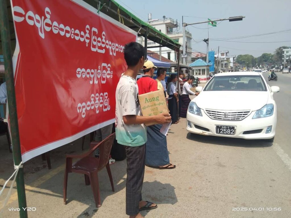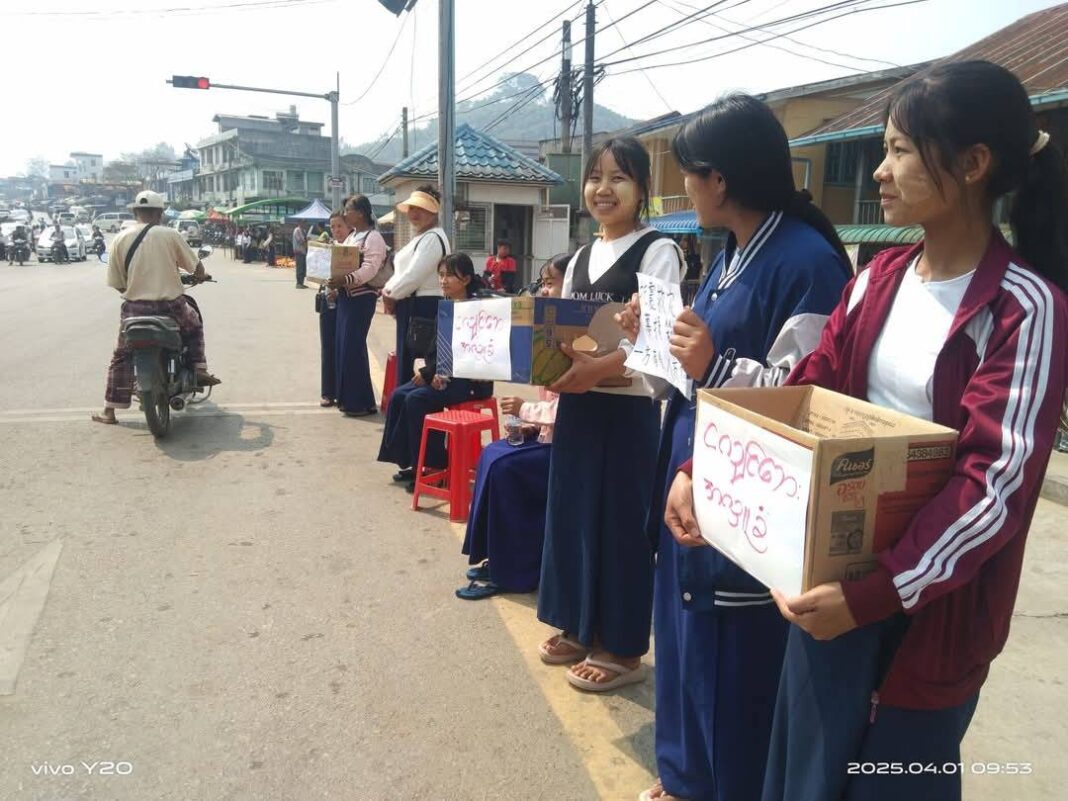 ကွတ်ခိုင်မြို့ ပြည်ထောင်စုလမ်းမကြီးပေါ်တွင် ငလျင်ဒဏ် ကူညီရန်အတွက် တအာင်းပညာရေးကောင်စီ TLEC မှ ဆရာ၊ ဆရာမများနှင့် ပြည်သူများလည်း အလှူငွေ ကောက်ခံနေကြောင်း သိရသည်။