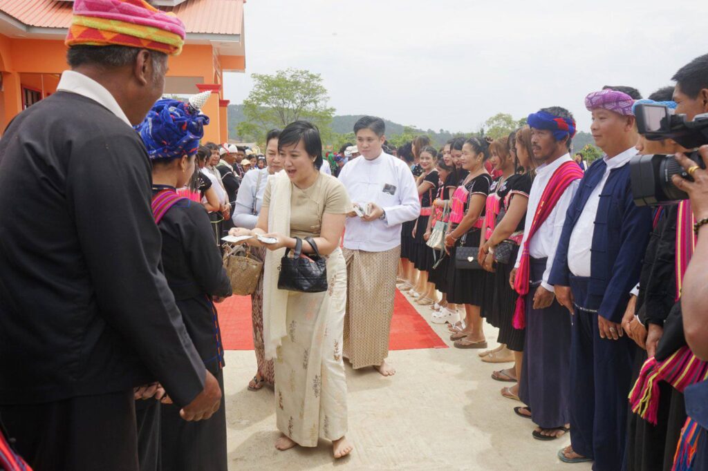 ယနေ့ (ဧပြီလ ၁၀ ရက်) နေ့လယ်ပိုင်းတွင် ပင်လုံမြို့ မေတ္တာအေးရိပ် ပရဟိတကျောင်း (ဝမ်လုံ) တွင် ကျင်းပပြုလုပ်ခဲ့သည့် စစ်ခေါင်းဆောင် မင်းအောင်လှိုင် မိသားစုမှ ဆောက်လုပ်လှူဒါန်းသော နာယက ကျောင်းဆောင်သစ် ရေစက်ချပွဲ၊ ရေ၊ လျှပ်စစ်မီးနှင့် လမ်းဖွင့်ပွဲသို့ စစ်ခေါင်းဆောင်ဇနီးဖြစ်သူ ဒေါ်ကြူကြူလှ၊ သားဖြစ်သူ အောင်ပြည့်စုံနှင့် ချွေးမဖြစ်သူ မျိုးရတနာထိုက်တို့ တက်ရောက်ခဲ့ကြသည်။