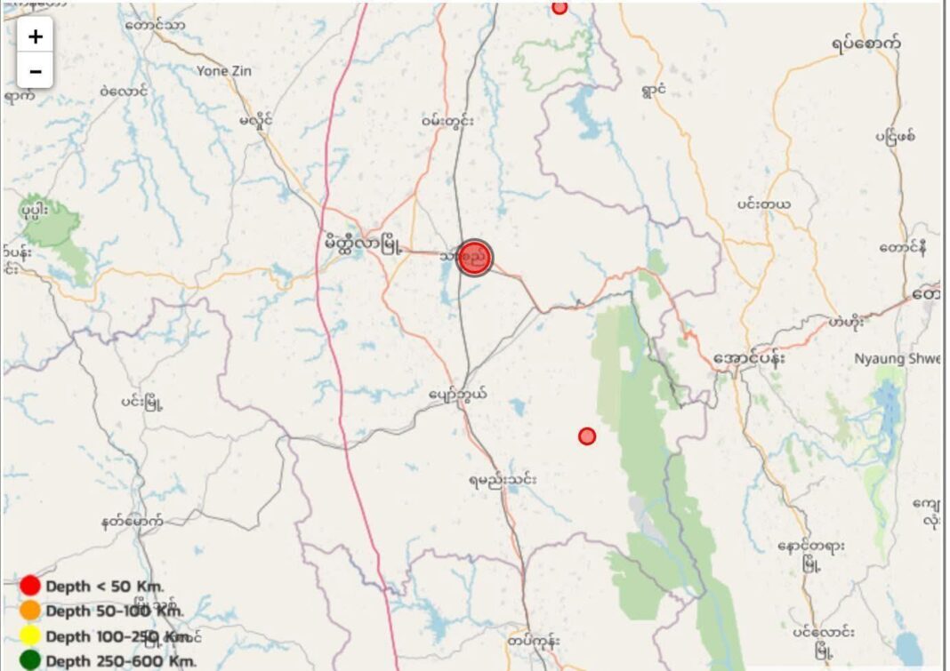 ယနေ့ ( ဧပြီလ ၁၁ ရက် ) မနက် ၁၁ နာရီဝန်းကျင်တွင် မန္တလေးတိုင်း၊ မိတ္တီလာဒေသ ၊ သာစည်မြို့ ၏ အရှေ့မြောက်ဘက် ၊ အင်တိုင်းသာ အနီးတွင် ဗဟိုပြု၍ ငလျင်လှုပ်ခတ်မှုဖြစ်ပွားခဲ့ကြောင် Earthquakes Prophecy Centre မှ ထုတ်ပြန်ခဲ့သည်။
