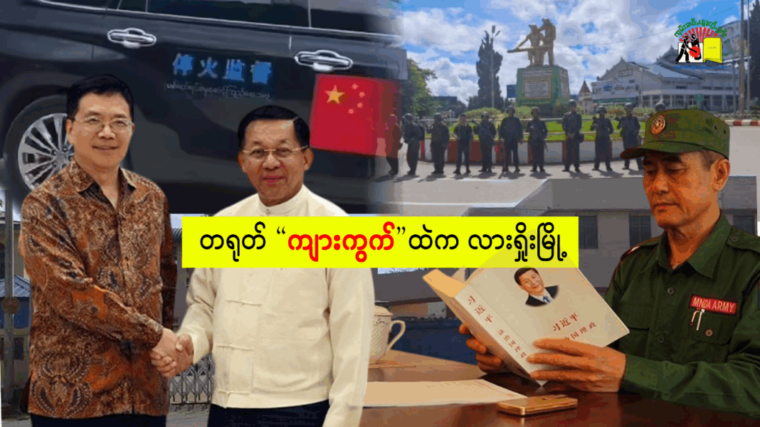 တရုတ်ဖိအားကြောင့်နဲ့ စစ်ကောင်စီရဲ့ လေကြောင်းအန္တရာယ် စိုးရိမ်မှုကြောင့် ကိုးကန့်တပ်က လားရှိုးမြို့ကနေ ဆုတ်ခွာတာမျိုး ပြောဆိုမှုတွေကြား တရုတ်နိုင်ငံခြားရေးဝန်ကြီး ဝမ်ယိ ပြောကြားထားတဲ့ မြန်မာနိုင်ငံအတွက် စည်း (၃) စည်းကို တရုတ်ကိုယ်တိုင်ပဲ ချိုးဖောက်လာခဲ့သလားဆိုတာ ရှင်းရှင်းလင်းလင်း မသိရသေးခင်မှာ ပြည်သူတွေအတွက် တာဝန်ခံမယ့်သူ မရှိဘဲ လားရှိုးမြို့ကြီးက တရုတ်ရဲ့ “ကျားကွက်” ကစားပွဲမှာ သက်သက်ထိုးကျွေးခံရရုံသာ … ။