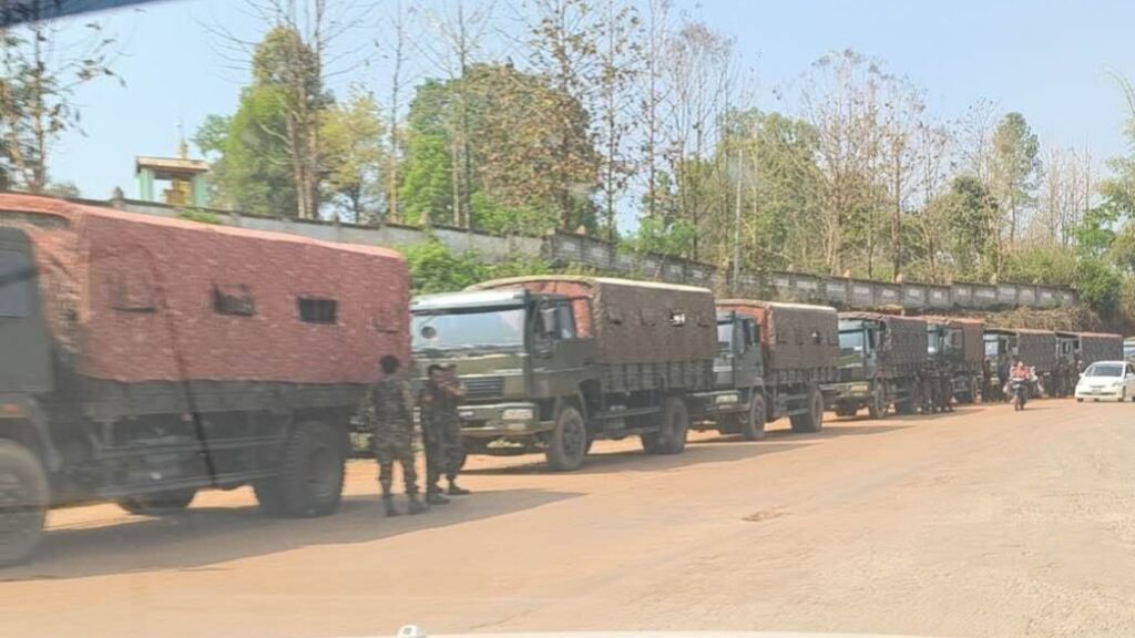 စစ်ကောင်စီ၊ MNDAA နှင့် တရုတ်အထူးကိုယ်စားလှယ်တို့ ဧပြီ ၂၂ရက် မနက်ပိုင်းမှာ သုံးပွင့်ဆိုင် ဆွေးနွေးမှုရလဒ်အဖြစ် အရှေ့မြောက် တိုင်းစစ်ဌာနချုပ် (ရမခ) မှ စစ်ကား ၁၂၀ ကျော်၊ အိမ်စီးကားငယ် (၁၀၀) နီးပါး၊ စုစုပေါင်း ကားအစီးရေ (၂၀၀) ကျော်ပါ စစ်ယာဉ်တန်းဟာ မြန်မာနိုင်ငံတော်အလံနှင့် ရခမ နေဝန်းနီအလံတို့ လွှင့်ထူကာ လားရှိုးမြို့ထဲ စစ်ကောင်စီတပ်သားများ ပြန်လည်ဝင်ရောက်လာခဲ့ပါတယ်။