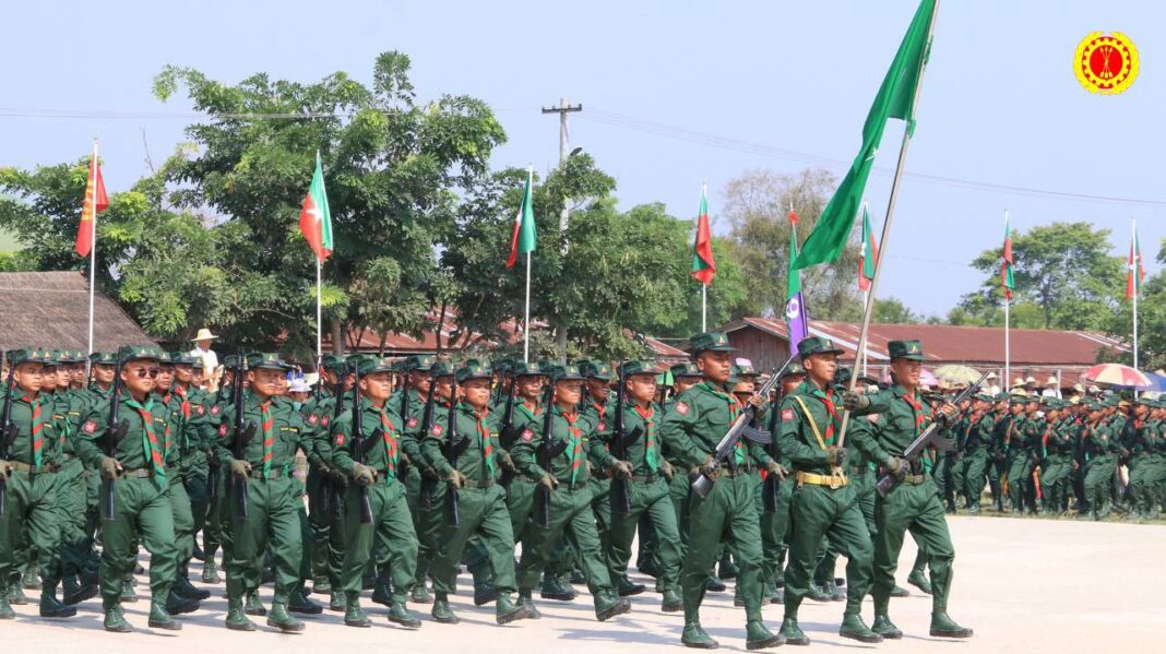 ဌာနချုပ်တွင် ကွန်မန်ဒို နှင့် တပ်သားစစ်သည်တော်များက စစ်ရေးပြသပြီး SSPP/SSA နာယက ဗိုလ်ချုပ်ကြီး ဆေထဲန် က အဖွင့်မှာစကား မိန့်ခွန်းပြောကြားသည်။