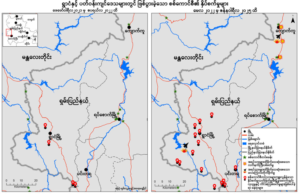 ထို့အပြင် ရွာငံမြို့နယ်နှင့် ရပ်စောက်မြို့နယ်တွင် စစ်ကောင်စီ၏ လေကြောင်းတိုက်ခိုက်မှုများနှင့် လက်နက်ကြီး ပစ်ခတ်မှုများကြောင့် အရပ်သား (၃)ဦးသေဆုံးပြီး (၁၄)ဦး ဒဏ်ရာရရှိကာ နေအိမ် (၁၈)လုံးပျက်စီးခဲ့ကြောင်း သိရသည်။