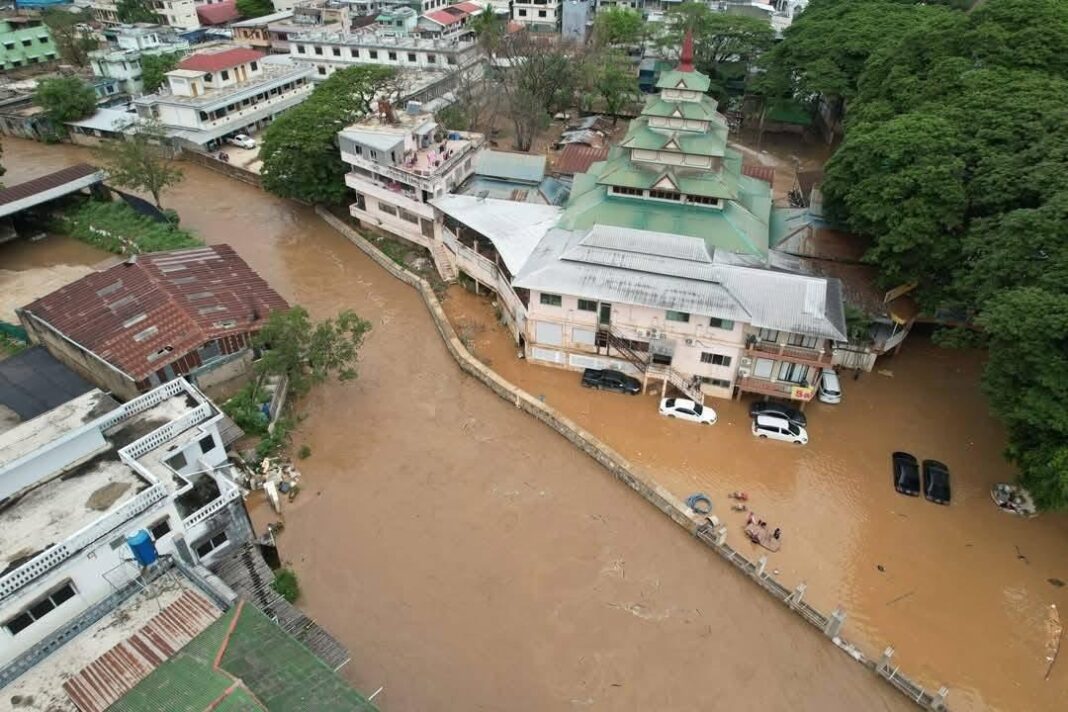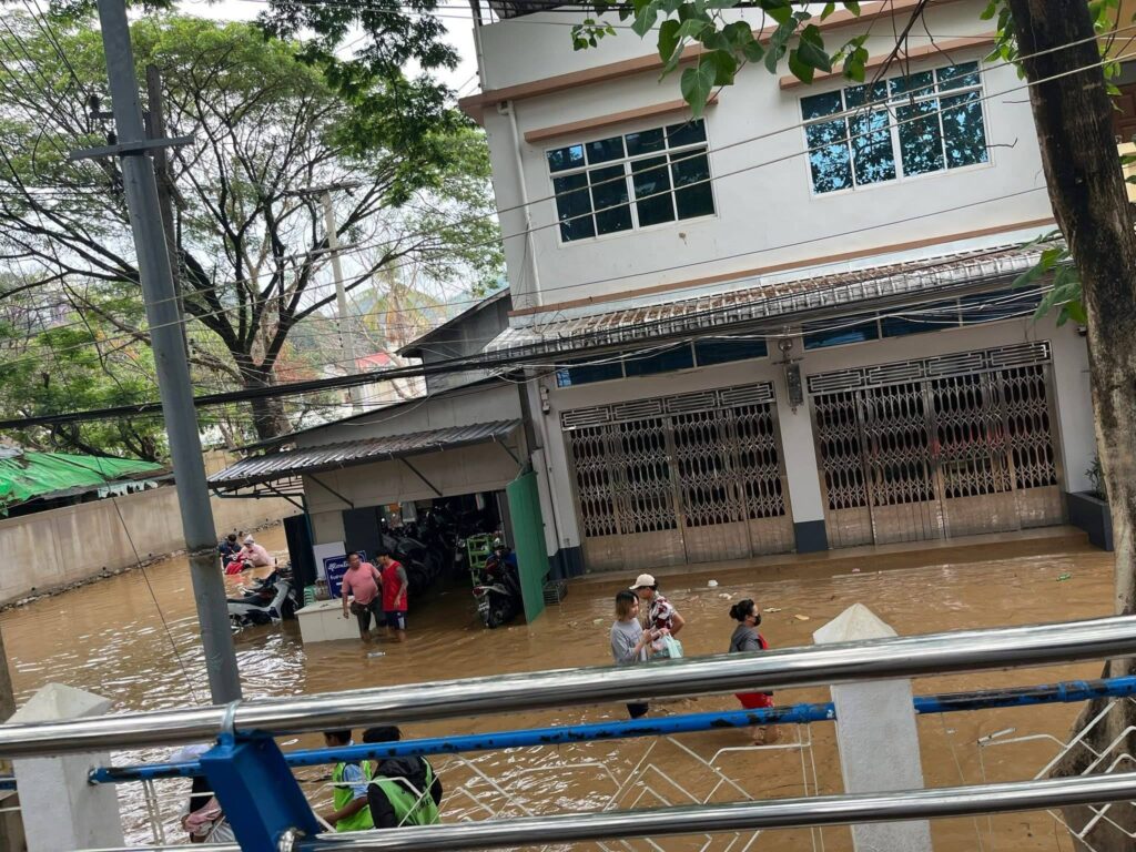 ထိုင်း-မြန်မာနယ်စပ်ဒေသ တာချီလိတ်မြို့တွင် မိုးသည်းထန်စွာ ရွာသွန်းမှုကြောင့် မယ်ဆိုင်ချောင်းရေလျှံပြီး ရေကြီးရေလျှံမှု ဖြစ်ပွားနေကြောင်း ဒေသခံများထံမှ သိရသည်။