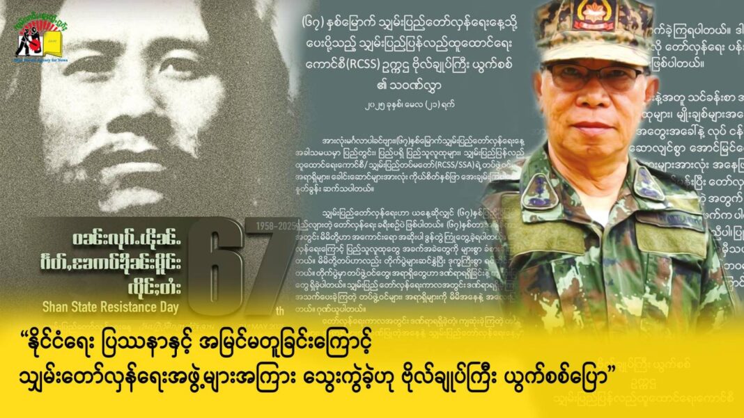 ယနေ့ မေလ ၂၁ ရက်တွင် ကျရောက်သော (၆၇) နှစ်မြောက် သျှမ်းပြည်တော်လှန်ရေးနေ့အတွက် ပေးပို့သည့် သဝဏ်လွှာထဲတွင် ဗိုလ်ချုပ်ကြီး ယွက်စစ်က ထိုကဲ့သို့ ထည့်သွင်းပြောဆိုထားခြင်း ဖြစ်သည်။