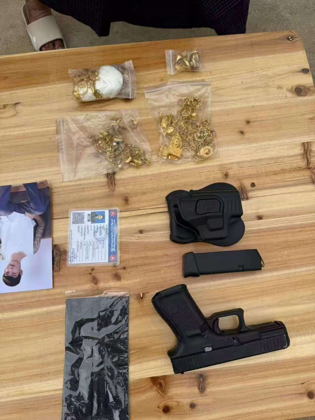 ဖမ်းဆီးရသူနှင့်အတူ တြိဂံဒေသတိုင်းစစ်ဌာနချုပ် လက်အောက် အမှတ် (၁၄) စစ်ဆင်ရေး ကွပ်ကဲမှုဌာနချုပ် (စကခ ၁၄) မှထုတ်ပေးသော သက်သေခံကတ်ပြား၊ ကျည်ဖြည့်ထားသော ပစ္စတို တစ်လက်နှင့် ရွှေထည်အချို့ကို သိမ်းဆည်းရမိကြောင်း၊ ထိုသူများသည်ပြည်သူ့စစ်အမည်ခံများ ဖြစ်နိုင်ကြောင်း မူဆယ်ဒေသခံများ ကပြောသည်။