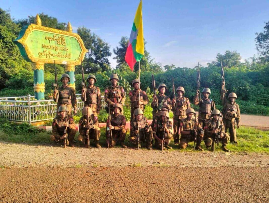 ပုံစာ – ရပ်စောက်လမ်းအထွက် နောင်ချိုမြို့ဝင်ဆိုင်းဘုတ်အထိ ရောက်ရှိလာသည့် စစ်ကောင်စီတပ် (ဓာတ်ပုံ – တယ်လီဂရမ်)