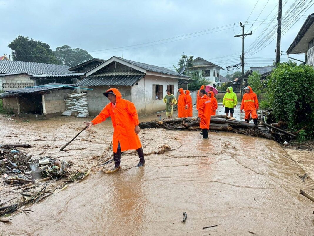 ယနေ့ သြဂုတ် ၆ ရက် နေ့လယ် ၁ နာရီဝန်းကျင်တွင်လည်း ချင်းမိုင်ခရိုင် Mai Ai မြို့နယ်၌ မိုးသည်းထန်စွာ ရွာသွန်းမှုကြောင့် ချောင်းရေလျှံတက်ပြီး ရေစီးနှင့်အတူ သစ်ကိုင်းများ၊ သစ်ပင်များ အများအပြား မျောပါလာခဲ့ကြောင်း Mai Ai မြို့နယ် စည်ပင်သာယာရေးအဖွဲ့က ထုတ်ပြန်ထားသည်။