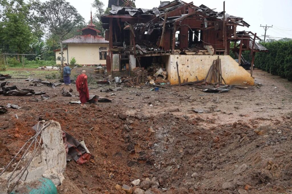 ယနေ့ (ဩဂုတ်လ ၁၅ ရက်) နံနက်အစောပိုင်း ၁၂ နာရီကျော်အချိန်တွင် မြန်မာ-တရုတ်နယ်စပ်ရှိ တအာင်း (ပလောင်)အမျိုးသားလွတ်မြောက်ရေးတပ်မတော် (TNLA) ထိန်းချုပ်သည့် နမ့်ခမ်းမြို့နှင့် ကချင်လွတ်လပ်ရေးတပ်မတော် (KIA) ထိန်းချုပ်သည့် မန့်ဝိန်းကြီးမြို့ကြား တောတွင်းတစ်နေရာသို့ စစ်ကောင်စီတပ်မှ လေကြောင်းဖြင့် ဗုံး (၄) လုံး ကြဲချတိုက်ခိုက်ခဲ့သည်။