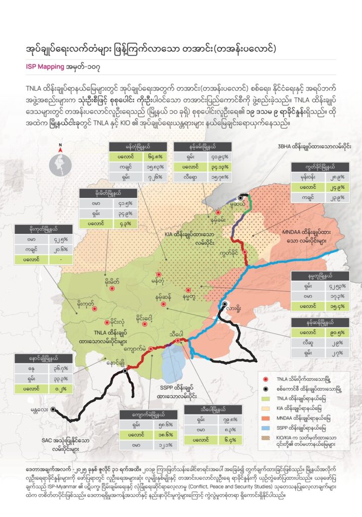 ထို့အပြင် ပြည်ထောင်စုနိုင်ငံရေး ဆွေးနွေး ညှိနှိုင်းရေး ကော်မတီ (FPNCC) အဖွဲ့ဝင်ဖြစ်သော ရှမ်းပြည် တိုးတက်ရေးပါတီ၊ ရှမ်းပြည်တပ်မတော်(SSPP/SSA) ၊ ကချင်လွတ်လပ်ရေးတပ်မတော် (KIA) တို့ထိန်းချုပ်သည့်နယ်မြေလည်းဖြစ်သည်။