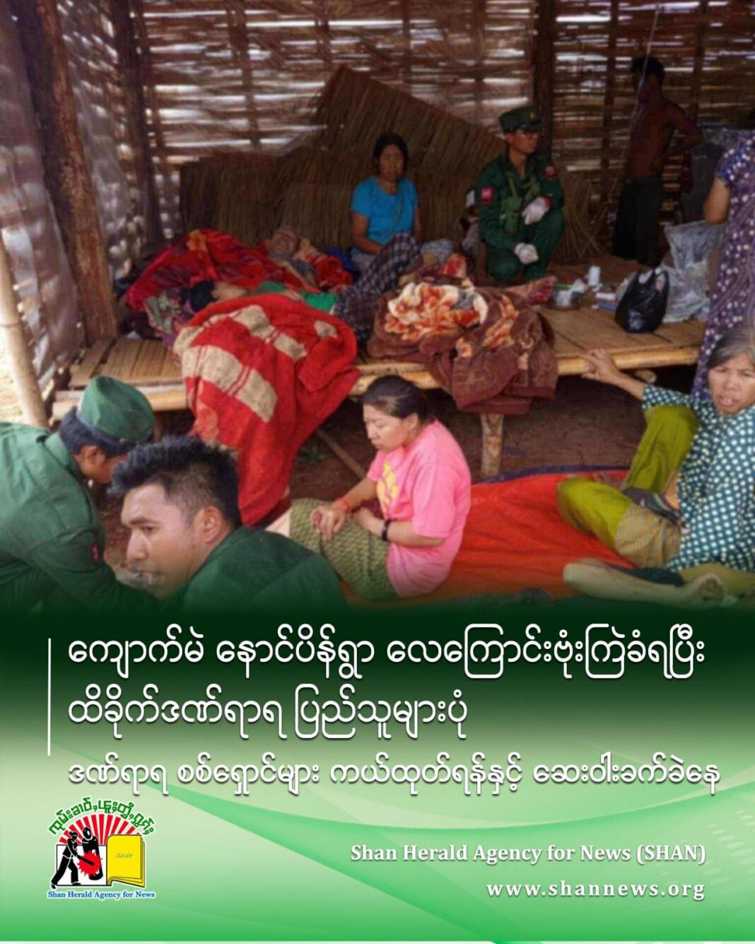 ထိခိုက်ဒဏ်ရာရသူအများစုမှာ အမျိုးသမီးနှင့် ကလေးများဖြစ်ပြီး လူမှုကူညီရေးအသင်းများမှ ကယ်ဆယ်ရေး သွားရောက်လုပ်ဆောင်နေသော်လည်း လူနာသယ်ထုတ်ရန်နှင့် ဆေးဝါးအခက်အခဲများ ကြုံတွေ့နေရကြောင်း စစ်ရှောင်ကူညီသူများထံမှ သိရသည်။