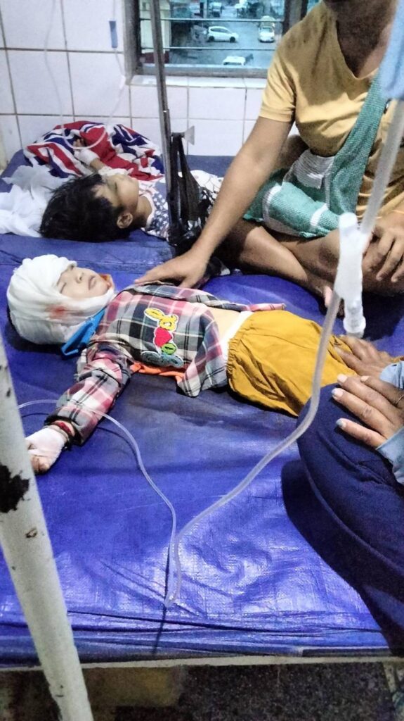 စစ်ကော်မရှင်တပ်၏ လေကြောင်းဗုံးကြဲ တိုက်ခိုက်မှုကြောင့် ပင်တီးကျေးရွာ မဇ္စျိမာရာမ အလယ်ကျောင်းတွင် နန်းလွမ့်ဦး အပါအဝင် အသက် ၅ နှစ်မှ ၁၈ နှစ်အတွင်း ကလေး (၆) ဦးလည်း သေဆုံးသွားကြောင်း ဒေသခံများ ပြောပြချက်အရ သိရသည်။