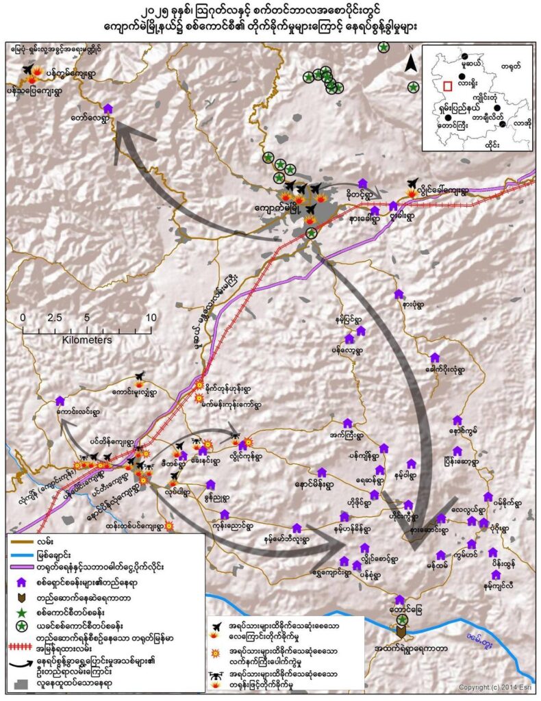လက်ရှိတွင် စစ်ကော်မရှင်တက်မှ ကျောက်မဲမြို့ဘက် မြေပြင်စစ်ကြောင်းထိုး ချီတက်နိုင်ရန် လေကြောင်းပစ်ကူဖြင့် ဗုံးကြဲတိုက်ခိုက်နေခြင်းကြောင့် ကျောက်မဲ၊ သီပေါမြို့ပေါ် ရပ်ကွက်များနှင့် ပြည်ထောင်စုလမ်းမကြီးတလျှောက် ကျေးရွာများမှ စစ်ဘေးရှောင် တစ်သောင်းကျော်မှာ ဘေးလွတ်ရာ ကျေးရွာများနှင့် လားရှိုးမြို့ဘက်သို့ ထပ်မံတိမ်းရှောင်လျက်ရှိပြီး အရေးပေါ် အကူအညီများ လိုအပ်နေကြောင်း စစ်ရှောင်ကူညီသူများထံမှ သိရသည်။