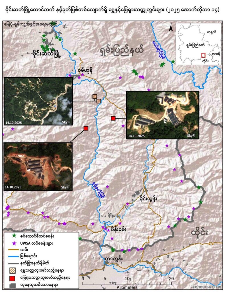 တရုတ်အစိုးရ ကျောထောက်နောက်ခံ ပြုထားသော China Investment Mining အမည်ရ ကုမ္ပဏီသည် အာဏာသိမ်းပြီးနောက် ၂၀၂၃ နှစ်လယ်ပိုင်းကတည်းက သျှမ်းပြည်အရှေ့ပိုင်း မိုင်းဆတ်မြို့နယ် မိုင်းယွန်းဒေသရှိ နမ့်ခုတ်မြစ်တလျှောက်တွင် မြေရှားသတ္တုတွင်းများ စတင်တူးဖော်နေခြင်းဖြစ်ကြောင်း ရှမ်းလူ့အခွင့်အရေး မဏ္ဍိုင် (SHRF) က ဆိုသည်။