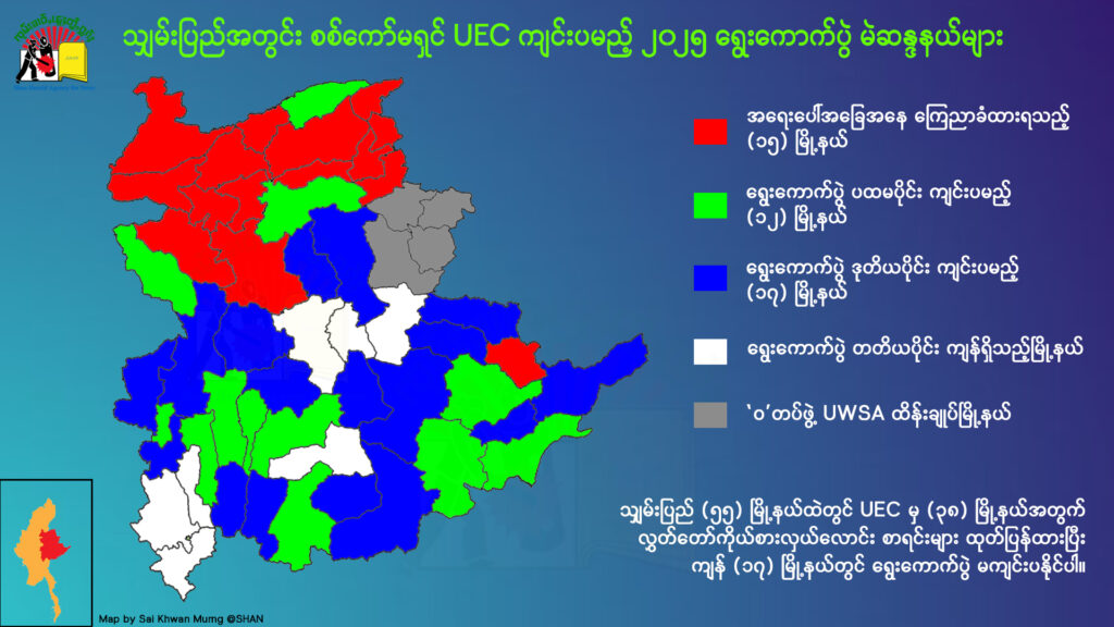 ရွေးကောက်ပွဲ အပိုင်းလိုက်ကျင်းပမှုနှင့် သျှမ်းပြည်အတွင်း မဲဆန္ဒနယ် အခင်းအကျင်း