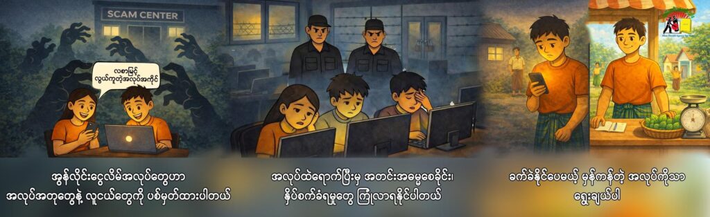 တရုတ် – မြန်မာ နယ်စပ်တစ်လျှောက် အပါအဝင် ထိုင်း – မြန်မာနယ်စပ်တို့တွင် အခြေပြု၍ အွန်လိုင်းငွေလိမ် ကျားဖြန့်လုပ်ငန်းများကို လက်နက်ကိုင်အဖွဲ့အစည်းများ၏ လုံခြုံရေး ရယူပေးမှုနှင့်အတူ တွင်တွင်ကျယ်ကျယ် လုပ်ဆောင်ခဲ့ကြသည်။