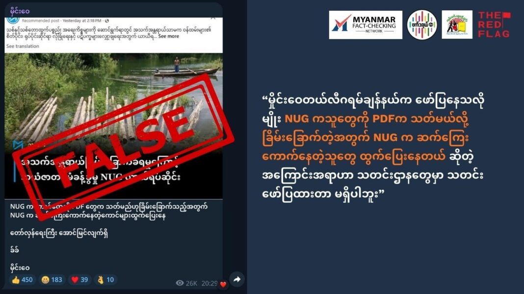 NUG ကသူတွေကို PDF က သတ်မယ်လို့ ခြိမ်းခြောက်တဲ့အတွက် NUG က ဆက်ကြေးကောက်နေတဲ့သူတွေ ထွက်ပြေးနေတယ်ဆိုပြီးစစ်ကောင်စီဝါဒဖြန့်ချန်နယ်တွေက သတင်းအမှား ဖြန့်ချိနေပါတယ်။