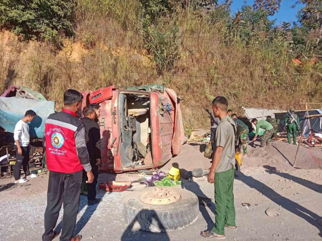 ယမန်နေ့ ( ဒီဇင်ဘာလ ၁၄ ရက်) ညနေ ၃ နာရီဝန်းကျင် မူဆယ် – ၁၀၅ မိုင်လမ်းပိုင်းရှိ ပြည်ထောင်စု လမ်းမကြီးပေါ်တွင် ဗြုန်းကျောက်သယ်ဆောင်သည့် ၆ ဘီးကား တစ်စီး ဘရိတ်ပေါက်ပြီး လမ်းသွားနေသော လူများကို တိုက်မိရာ နှစ် ဦးသေဆုံးပြီး ရှစ် ဦးထိခိုက်ဒဏ်ရာရရှိခဲ့ကြောင်း မူဆယ်မြို့နယ် ဒေသခံအမျိုးသား တစ်ဦးက သျှမ်းသံတော်ဆင့် ကိုပြောသည်။